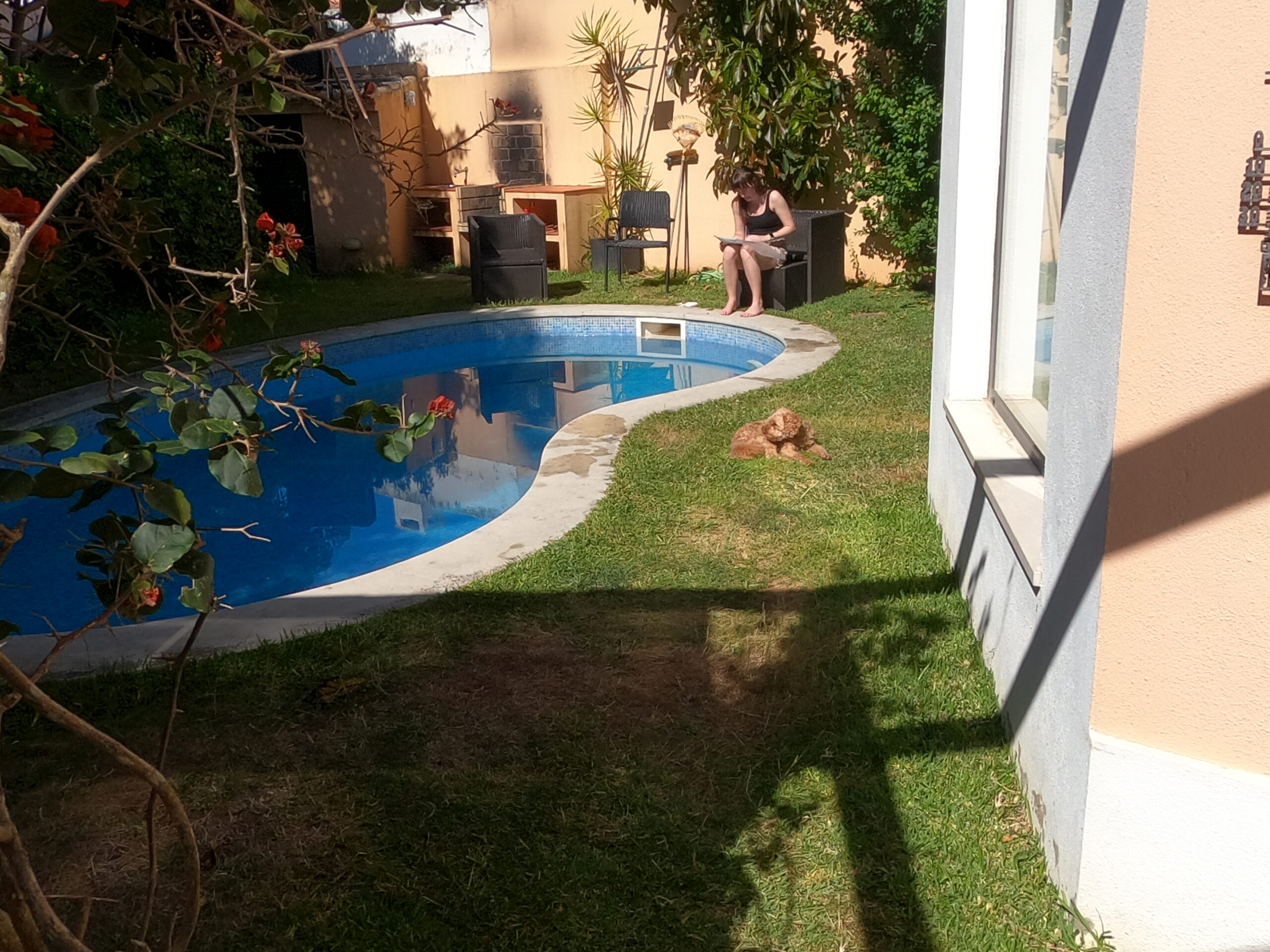Sedan måste man kolla in poolen. Charlie verkar vara nöjd men skeptisk