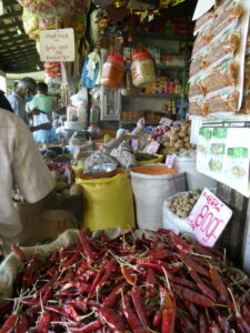 Efter vår rundvandring var det dags att besöka den lokala marknaden. Här kunde man köpa allt från frukt och grönsaker till kött, ägg och fisk – och till vår stora glädje även kryddor! Vi kom fullastade ut från marknaden med påsar fulla med dofter av kanel, curry och stark chili. Dagen fortsatte i kryddornas tecken och vi stoppade även till i en Ayurvedisk kryddträdgård. Vi fick en omvisning där vi fick smaka och lära oss mer om vad naturens läkemedel kan användas till. En härlig lunch avnjöts med en stor Lion-beer, vilket är den lokala ölsorten. Även här avslutade vi vårt besök med fulla påsar med olika burkar som lovades vara gott får både kropp och själ.